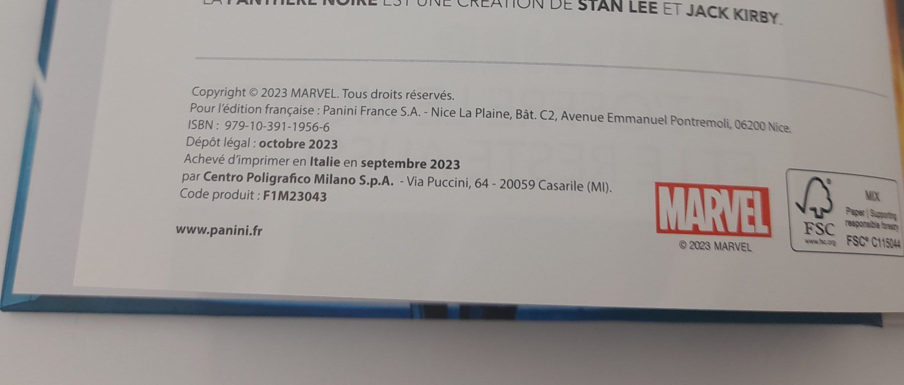 Éditeur : Panini Comics • Dépôt légal : octobre 2023
