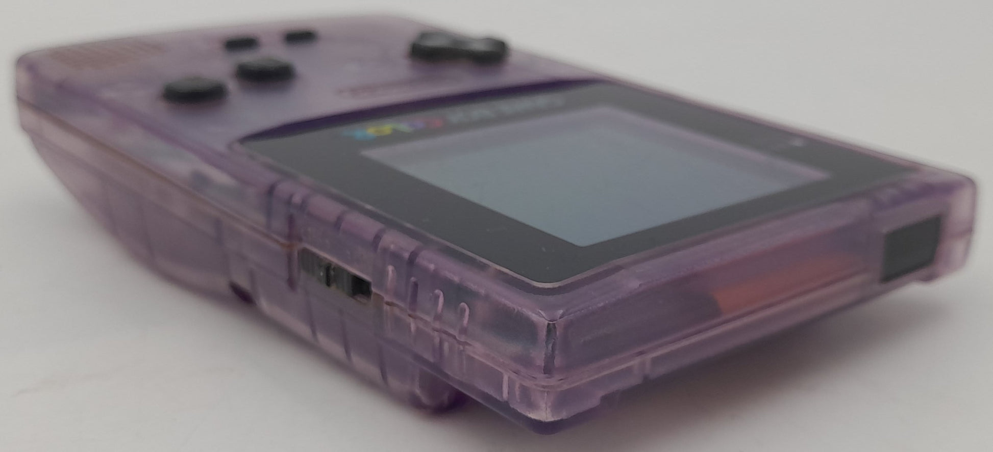 Lot comprenant une console Nintendo Game Boy Color transparente violette modèle original avec un ensemble de 30 jeux Game Boy et Game Boy Color
