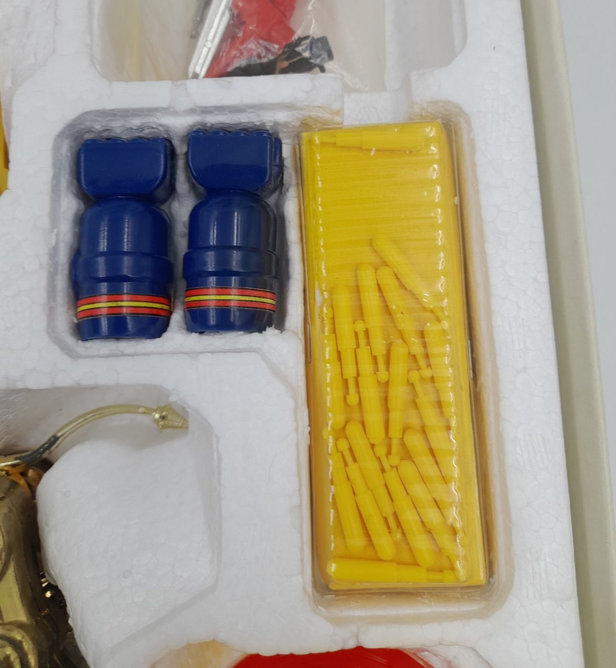 Le lot présenté est conforme aux photos : robots en bel état, couleurs éclatantes, nombreux accessoires présents, polystyrène d’origine et boîte illustrée.