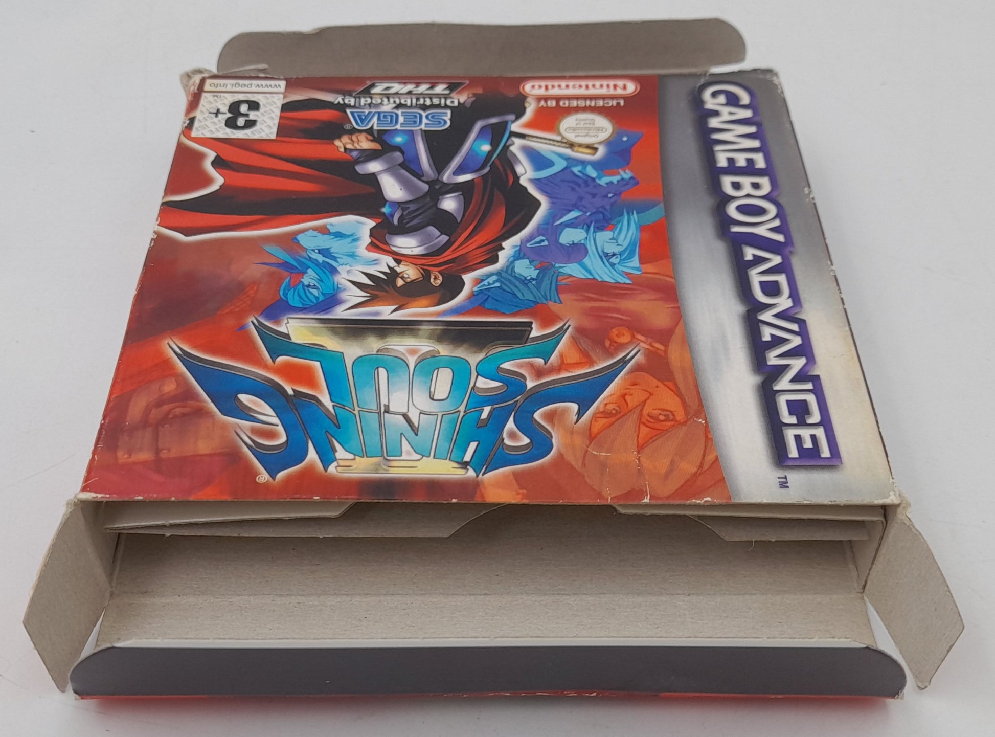 Jeu Shining Soul sur Game Boy Advance en version européenne, complet avec boîte d’origine, notice et cartouche officielle.